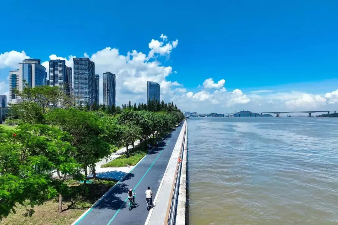 目前,南沙湾滨海岸线慢行道已实现全线贯通,正有序推进城市家具设置、绿化景观升级等收尾工作,预计今年国庆节前可对市民开放。