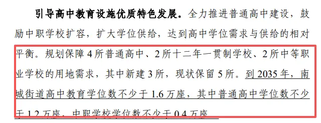 按照这个规划,到2035年,南城的学位也大幅增加。