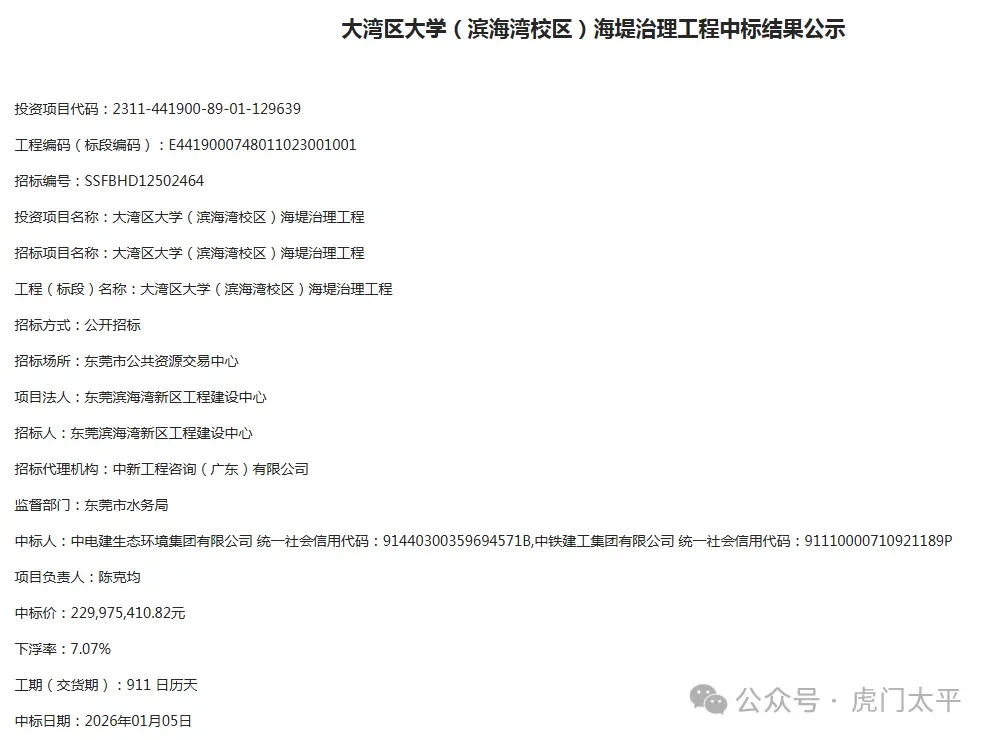 近日,广东省公共资源交易平台公示大湾区大学(滨海湾校区)海堤治理工程招标结果。虎门威远岛上这段长约2.3千米的海堤治理工程,即将开工。