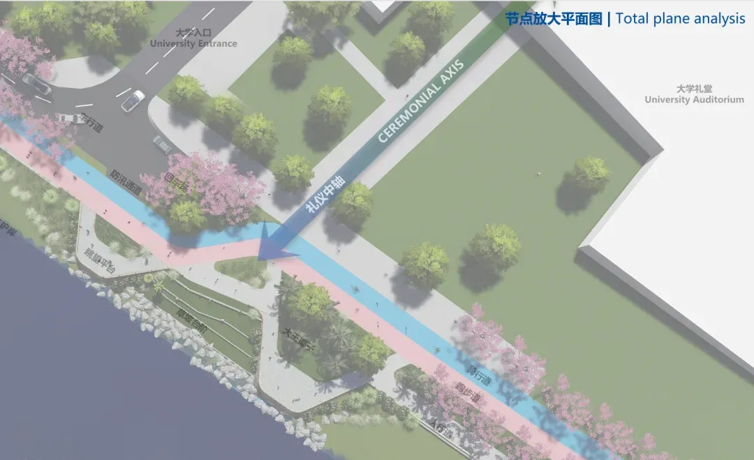 观海平台、跑步道、非机动车道