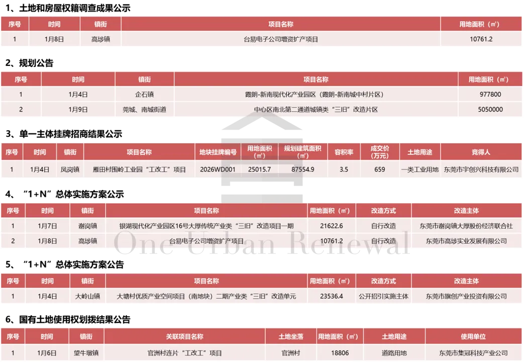 2026年第1周东莞城市更新市场周报