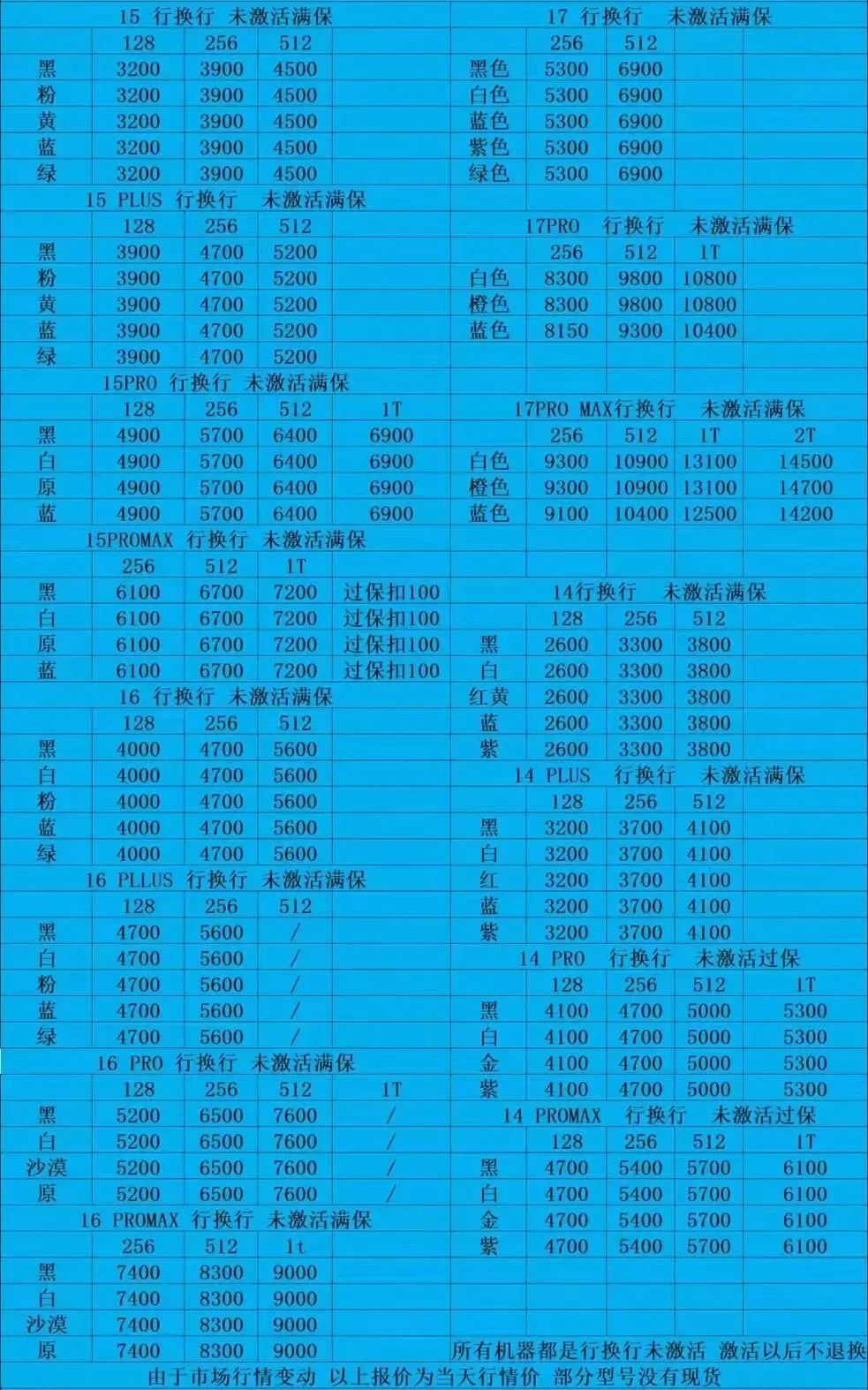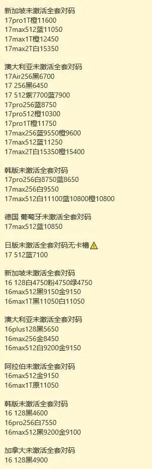最新国行官换苹果手机批发报价单(单机)