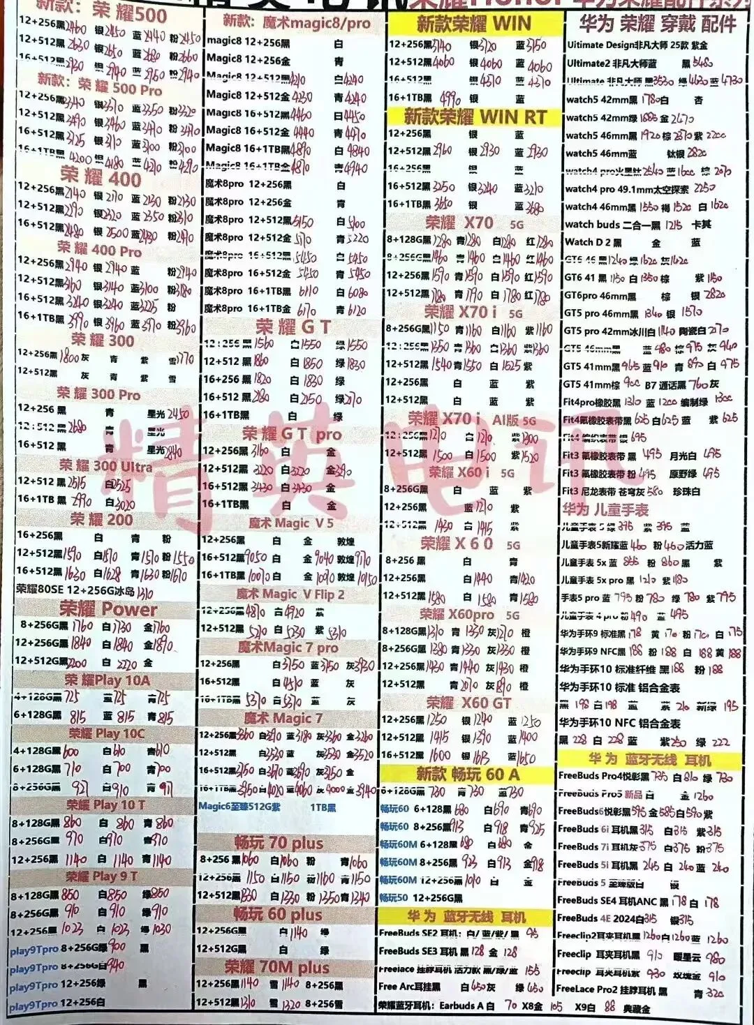 最新全新原封国行华为荣耀小米一加红魔等手机批发报价