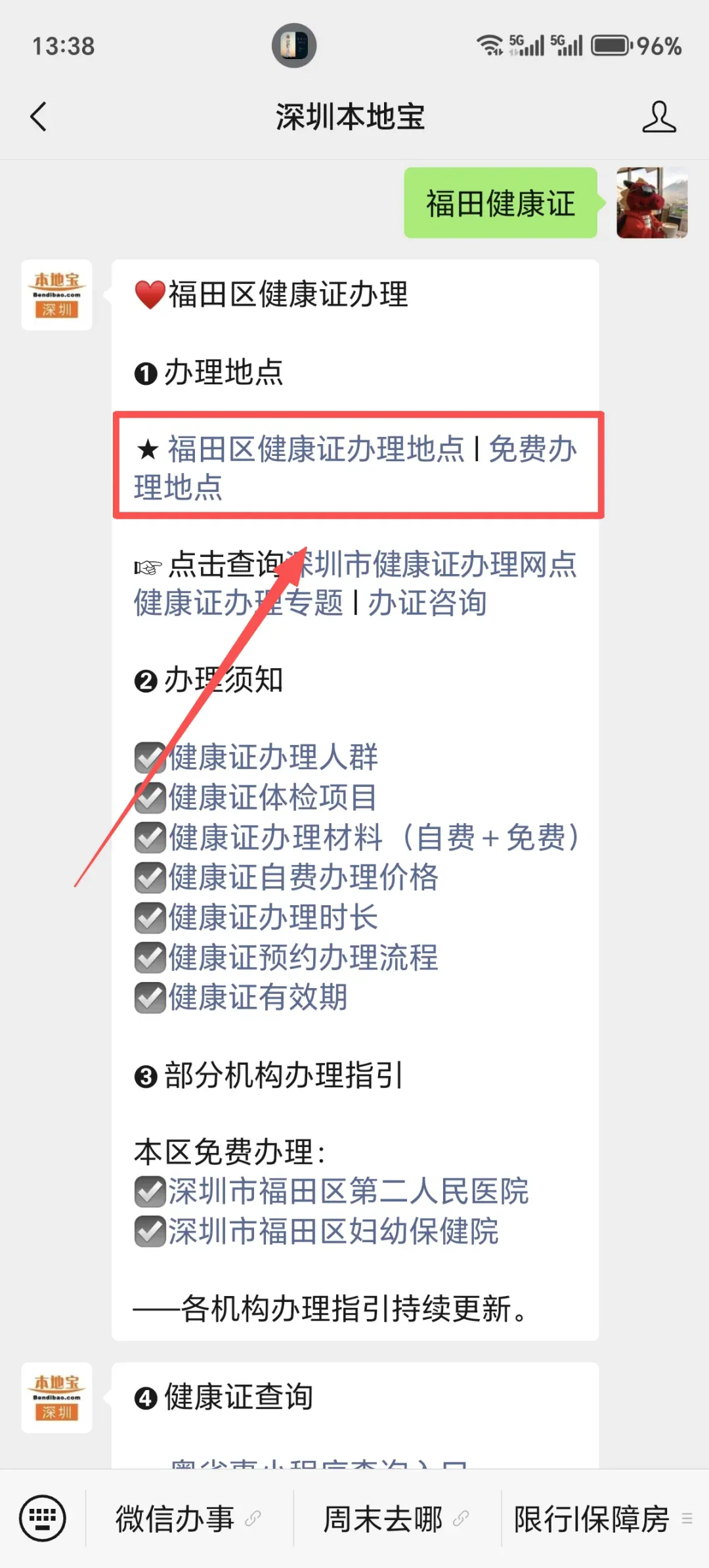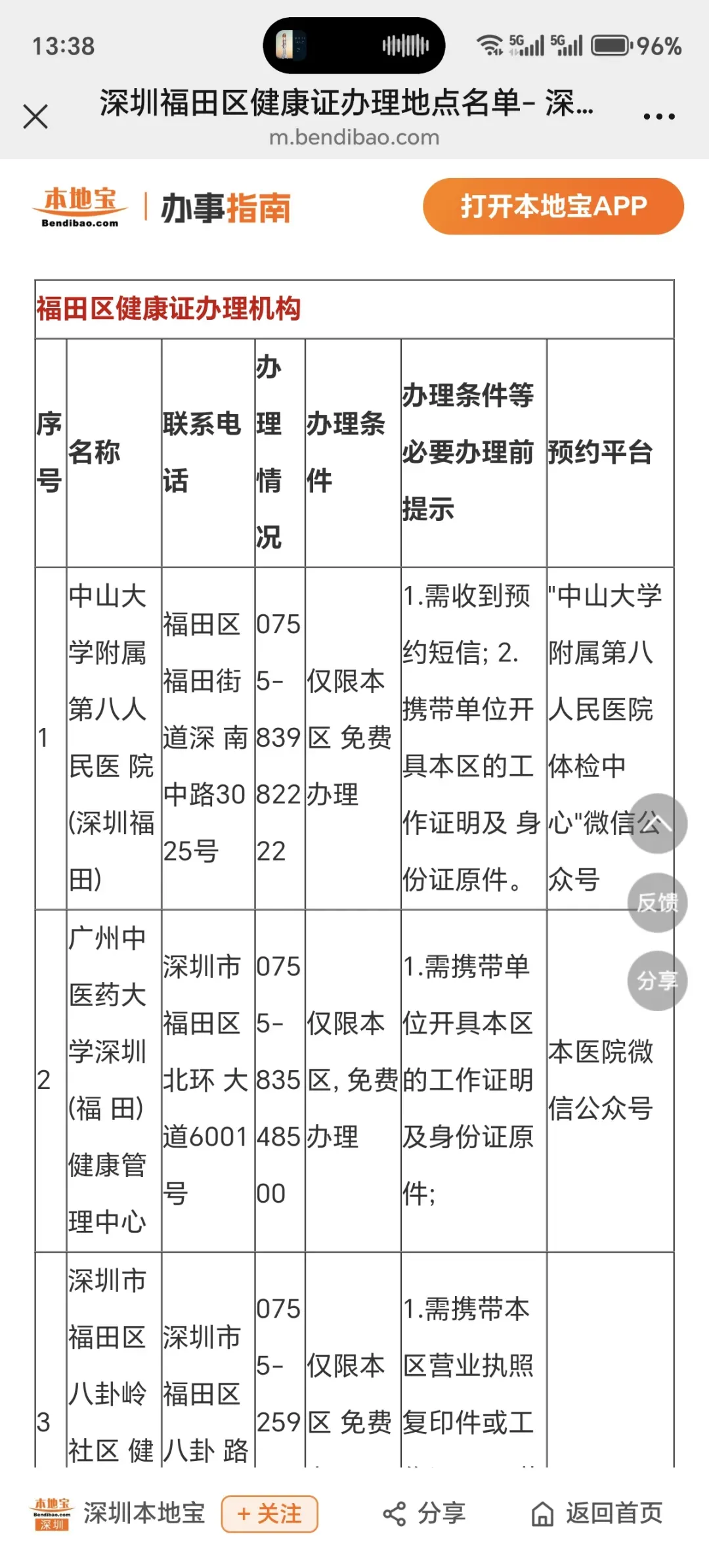 ✅第二步:选择你周边的区域的,如何点击即可(以福田健康证为例),建议选择免费办理地点,然后根据表格的提示办理即可