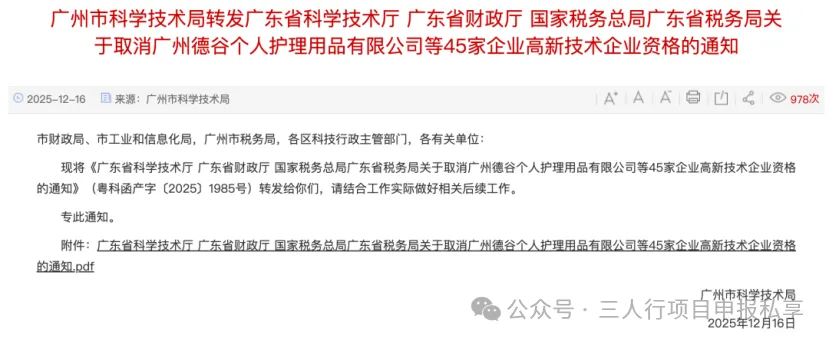 2025年 12月16日,《广东省科学技术厅、广东省财政厅、国家税务总局广东省税务局联合发布通知(粤科函产字〔2025〕1985号)》,正式取消了广州多益网络股份有限公司2021年至2023年度的高新技术企业资格。