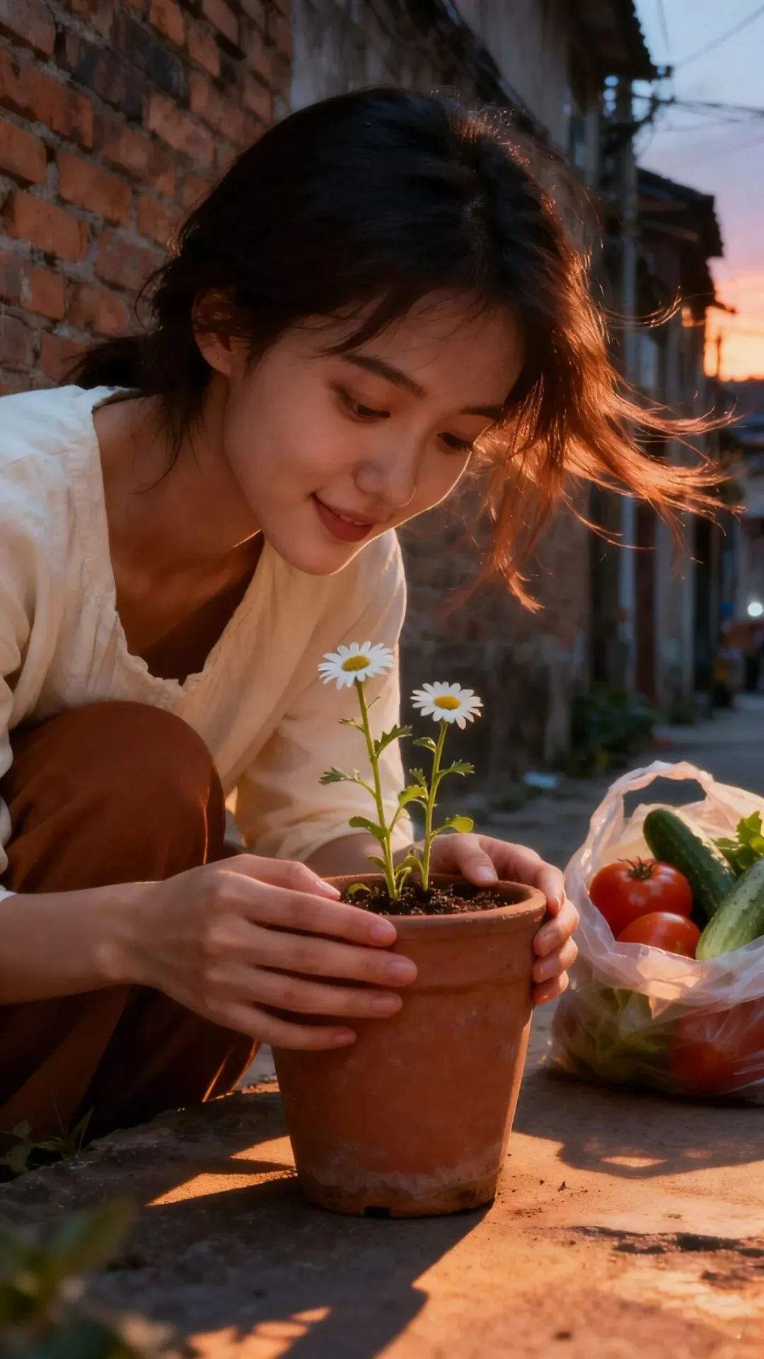 回家的路上,我们拎着半袋沉甸甸的菜,她突然拽住我的袖子,指着墙角卖花的老太喊:“你看你看,小雏菊好便宜!”我咬咬牙,花五块钱买了一束。她捧着花,笑得眼睛弯成了月牙:“以后咱们的阳台,一定要摆满花。”晚风裹着巷子里的油烟味和花香,甜得腻人。