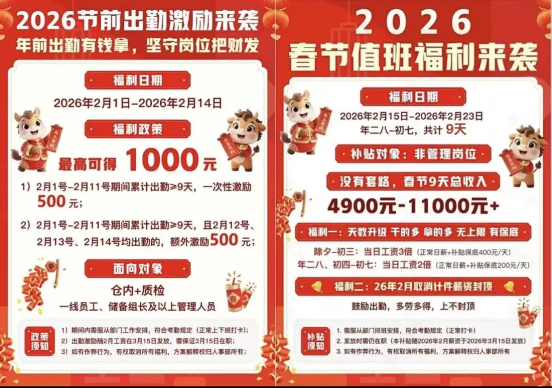 ➕ 加班费25元/小时 + 工龄奖100-300元
