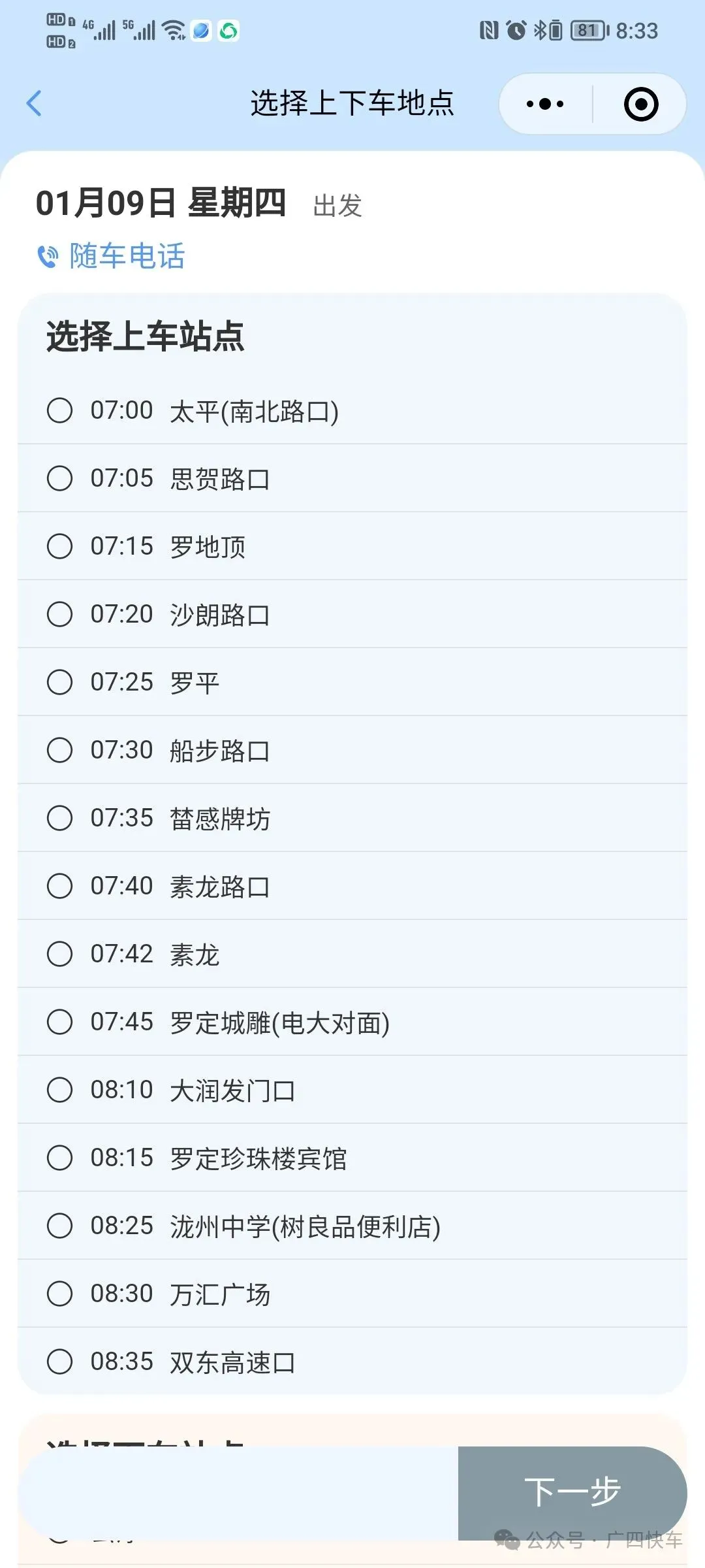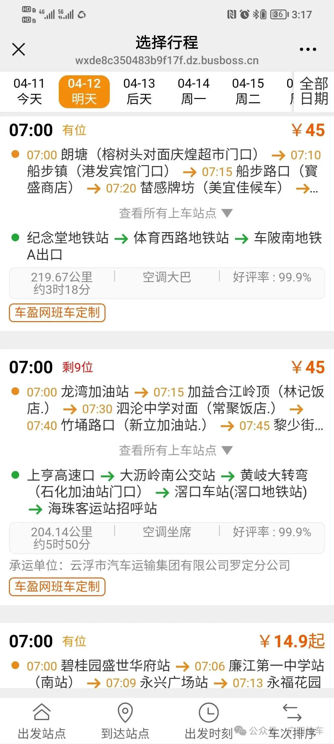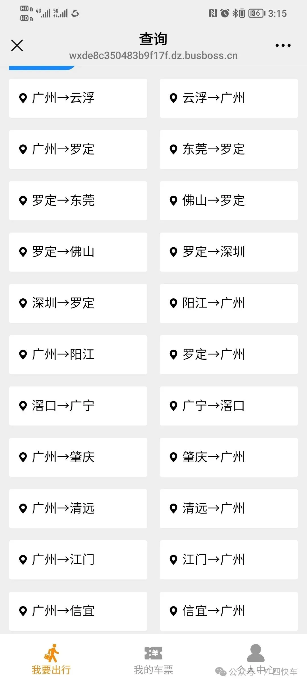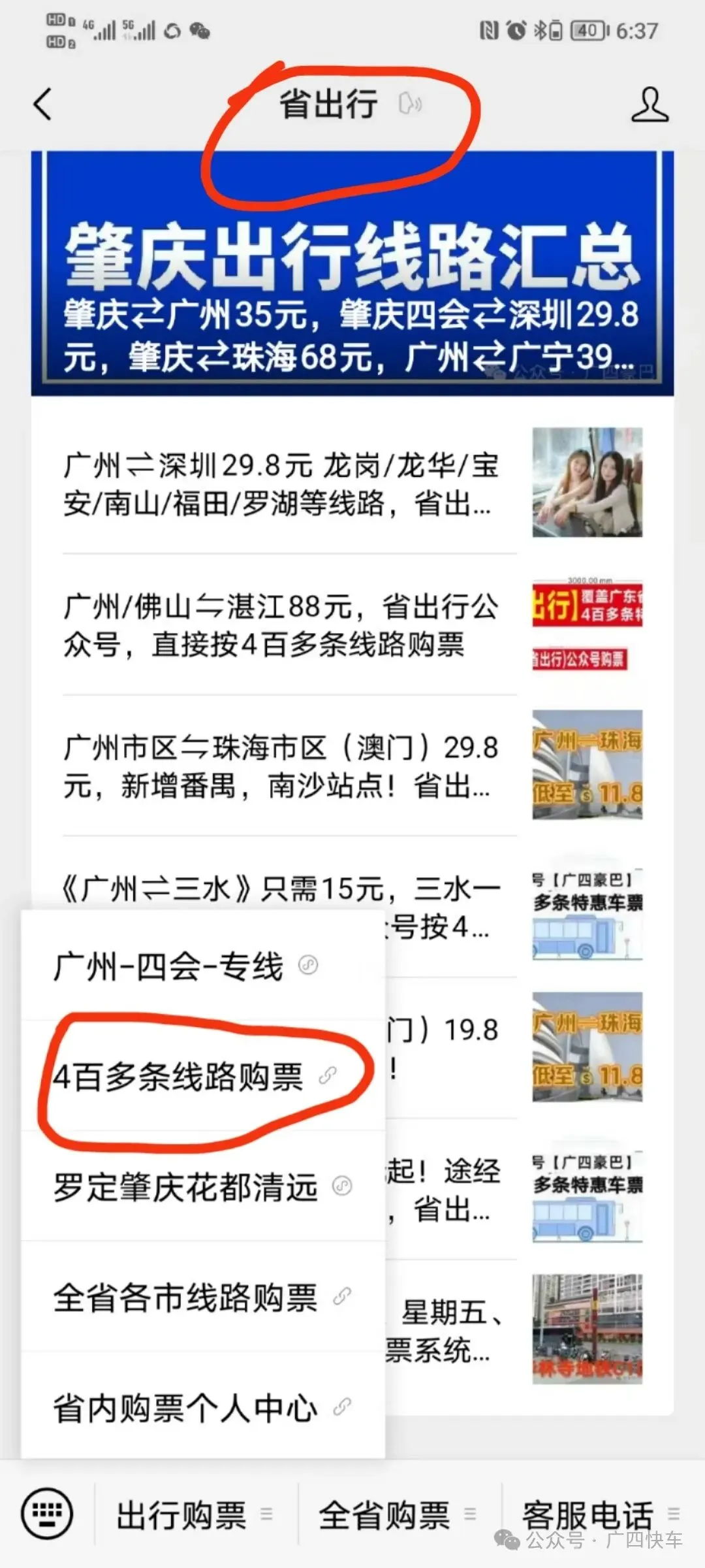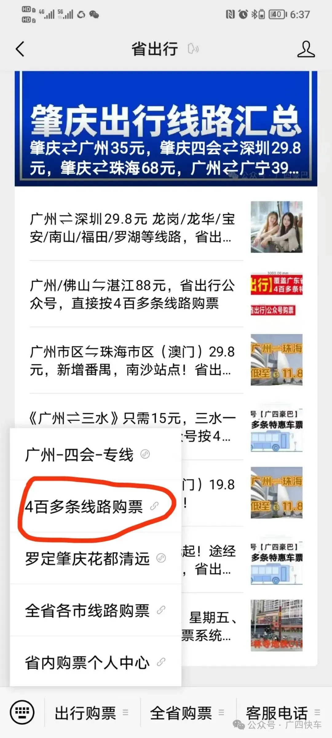 1、【广四快车/省出行】公众号-订购票-订票主页-特惠线路(建议至少提前一天预订)