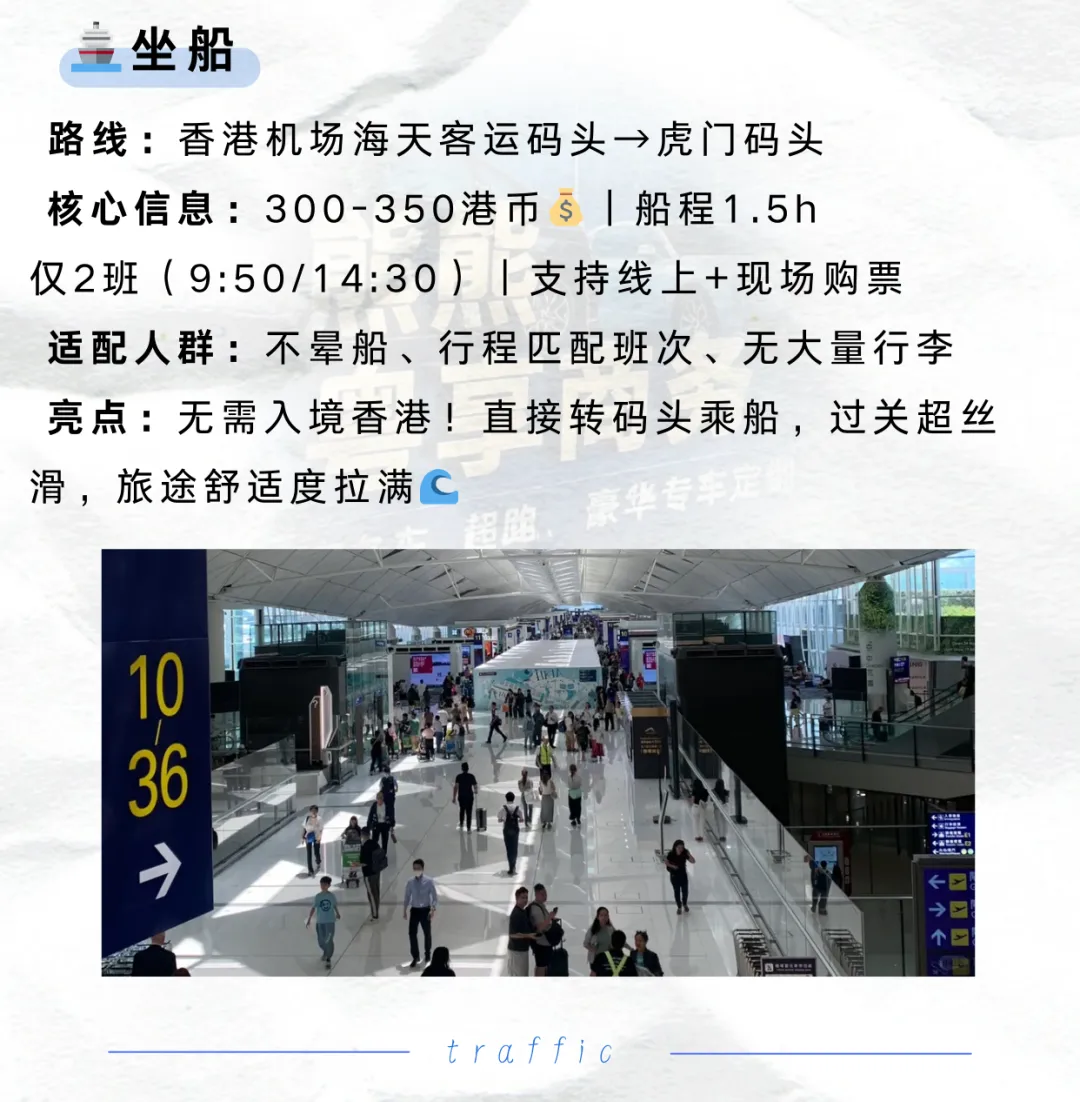 亮点:无需入境香港!直接转码头乘船,过关超丝滑,旅途舒适度拉满🌊