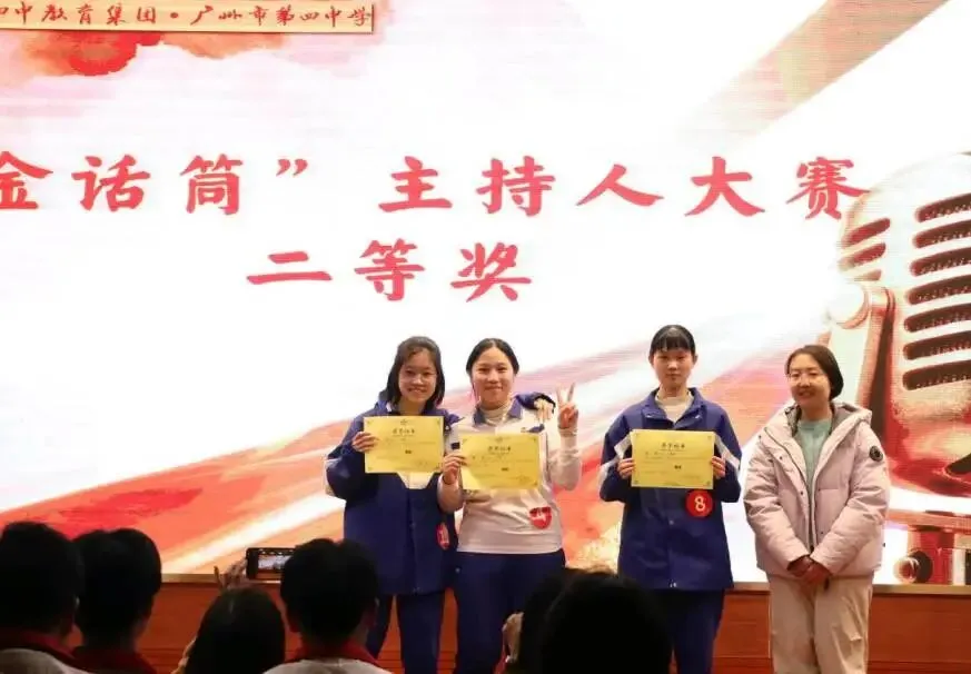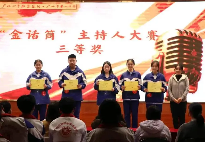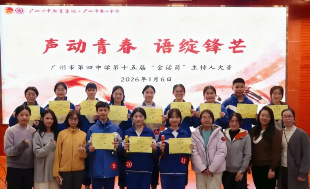 至此,广州市第四中学第十五届“金话筒”主持人大赛决赛圆满落幕。这不仅是一场语言与智慧的较量,更是一次青春与梦想的共鸣。话筒传递声音,声音传递思想,思想照亮舞台。愿所有热爱表达的你们,继续在人生的舞台上,声动青春,语绽锋芒!