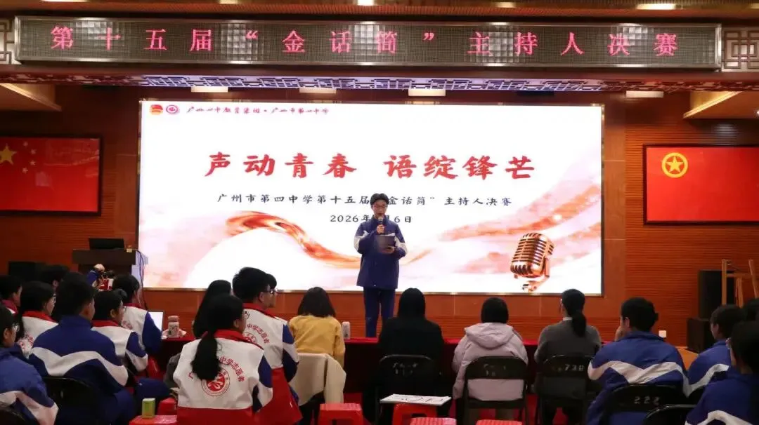 2026年1月6日,新年伊始,正元旦的喜庆氛围正浓未歇之际,广州市第四中学迎来了第十五届“金话筒”主持人大赛决赛,我们将暖意与欢腾化为新的声浪,开启金话筒比赛的华彩篇章。