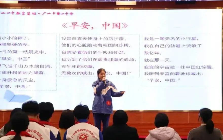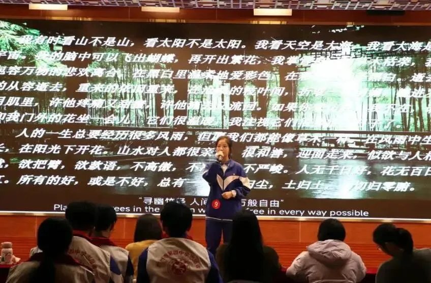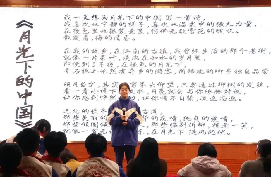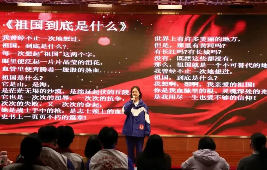 在第一环节“个人展示”中,选手们围绕“讲故事”“文学朗诵”“主题演讲”三种形式,展现了各具特色的语言风格与真挚的情感表达能力。从《早安,中国》中流淌出的青春朝气,到《致敬》里对缉毒警察的深沉礼赞,再到《爱你老己,明天见》传递出对当代年轻人精神世界的细腻关照——每一段演绎都是一次心灵的抵达。十三种声音,十三重色彩,共同勾勒出四中学子向上向善的语言图景,让我们听见青春的回响,更看见未来的模样。