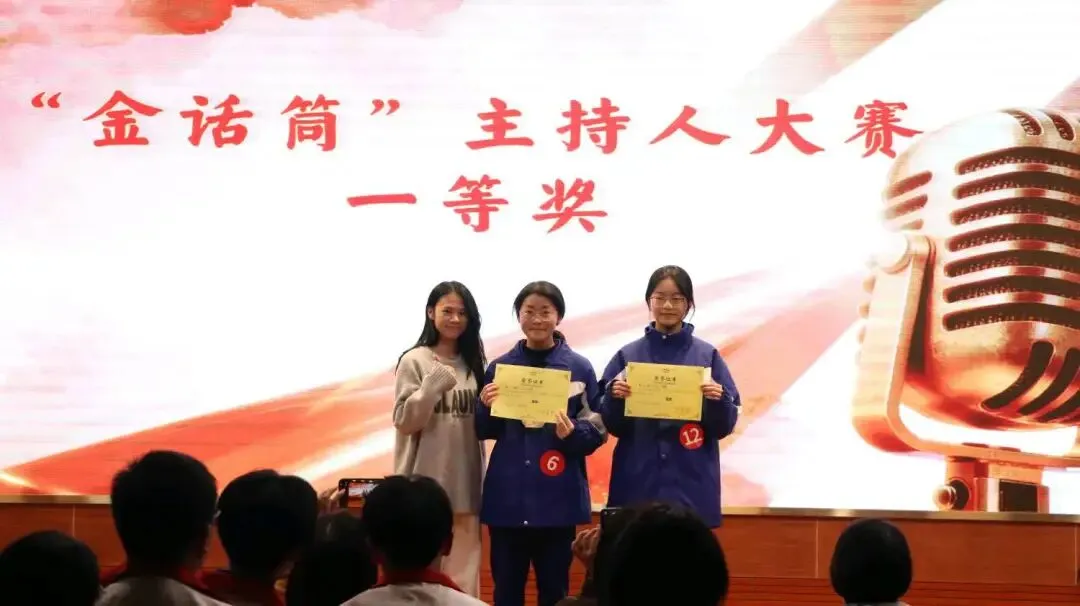 思政处陈婧主任为郑雅淳选手授金话筒,聂叶妮、叶芬芳老师依次为银奖、铜奖获奖选手颁奖。全场掌声不断,向所有在舞台上闪耀的学子致以真挚的祝贺。