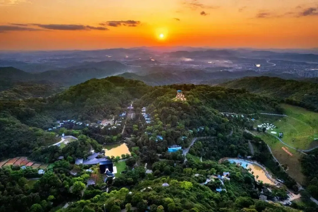 广州山谷.旅游度假区位于广州从化桃花小镇内。背靠大金峰,四面环山,周围被树木环绕,与山谷地形巧妙的融合。