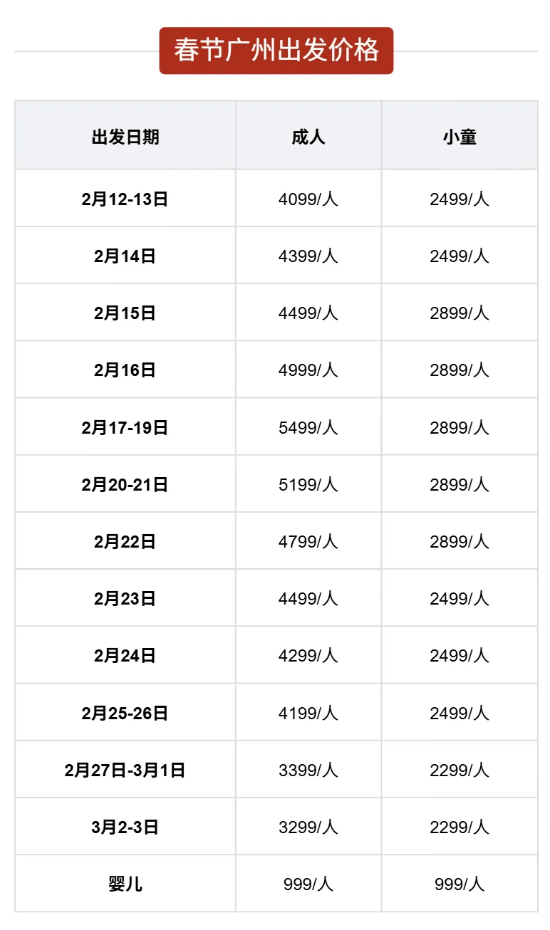 2、婴儿:2周岁以下(不含);婴儿费用仅包含往返机票+车位;