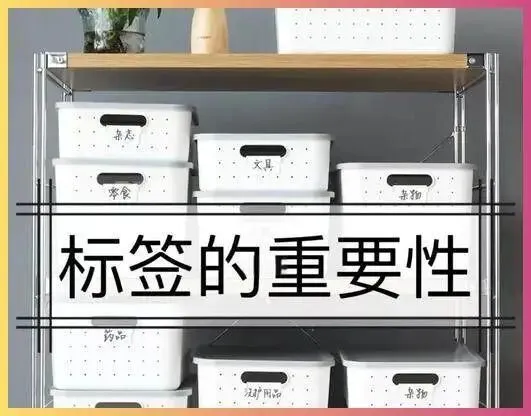 特别妙的是,他还用标签纸自己标分类——“文具”“厨房”“杂物”。