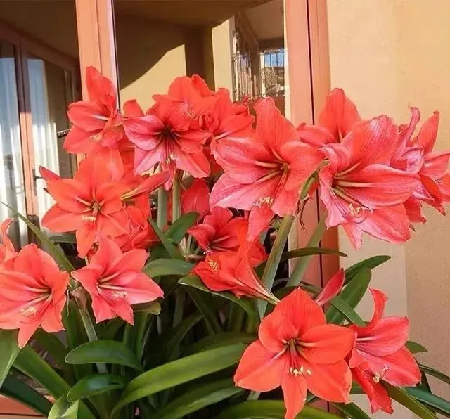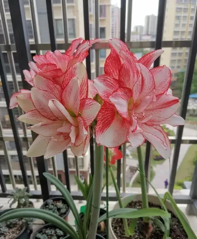她养了六年 , 从一盆到十几盆 , 阳台快变成朱顶红展览馆了。