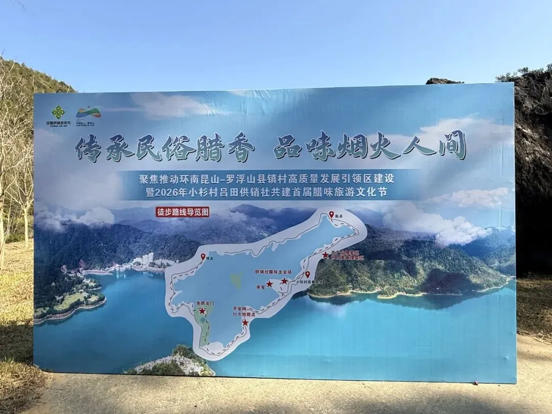 曾经总羡慕国外规划完善的徒步道,如今发现我们的城市周边,也藏着越来越多绝美的徒步步道。越来越爱广州的理由,大抵是工作日能沉浸在都市的便利与繁忙里,周末驱车1-2小时,就能一头扎进大自然的怀抱,把喧嚣甩在身后。冬日暖阳的周六,邂逅了吕田的小杉村,一脚迈入了如陶渊明笔下的世外桃源-号称“小泸沽湖”!巧遇村里正办腊味旅游文化节,停车后有免费接驳车直达徒步碧道,抬头一看:小泸沽湖!!!(心里嘀咕:这村委也真够敢写的!)
