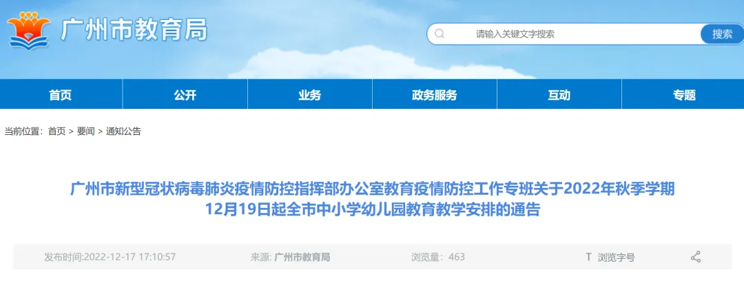 根据当前我市新冠肺炎疫情防控形势,经市新冠肺炎防控指挥办同意,现就2022年秋季学期12月19日起全市中小学幼儿园教育教学工作作出如下安排: