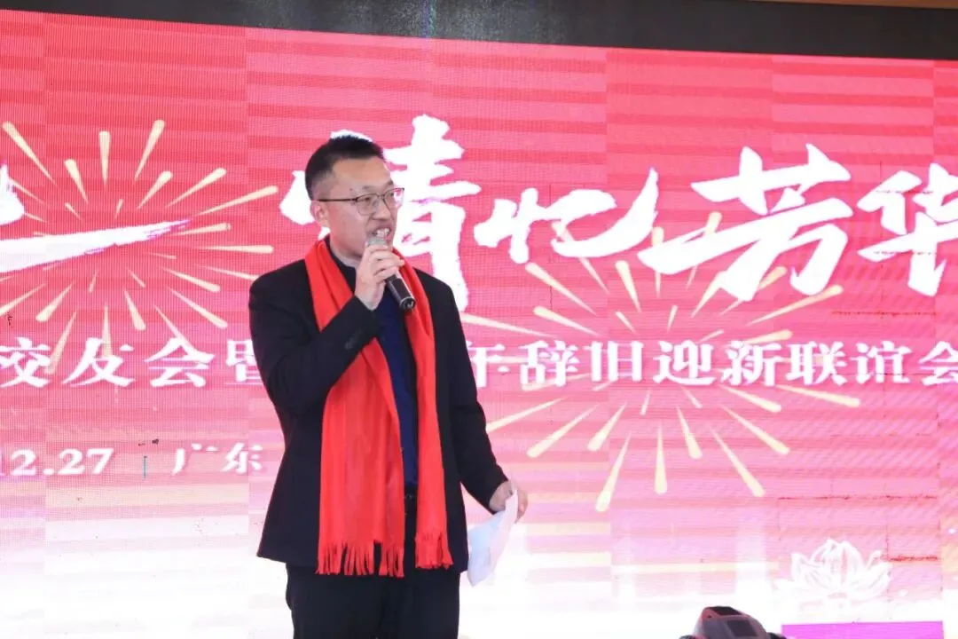 新任会长刘景川致辞,深情感恩母校的培育之根、师长的教诲之恩以及校友们在大湾区相遇的珍贵之缘,呼吁广大校友常联络、多互助,将校友会真正打造成为在异乡求学、工作、生活的校友们温暖的“家”。