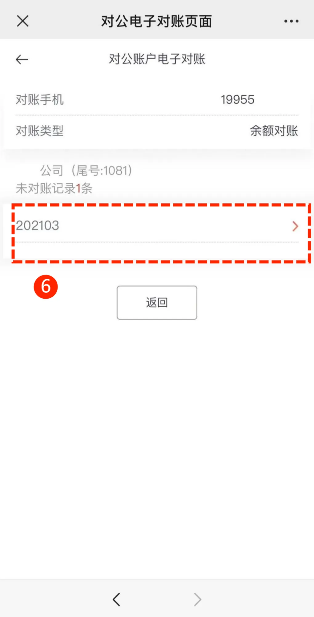 根据系统提示选择未对账记录