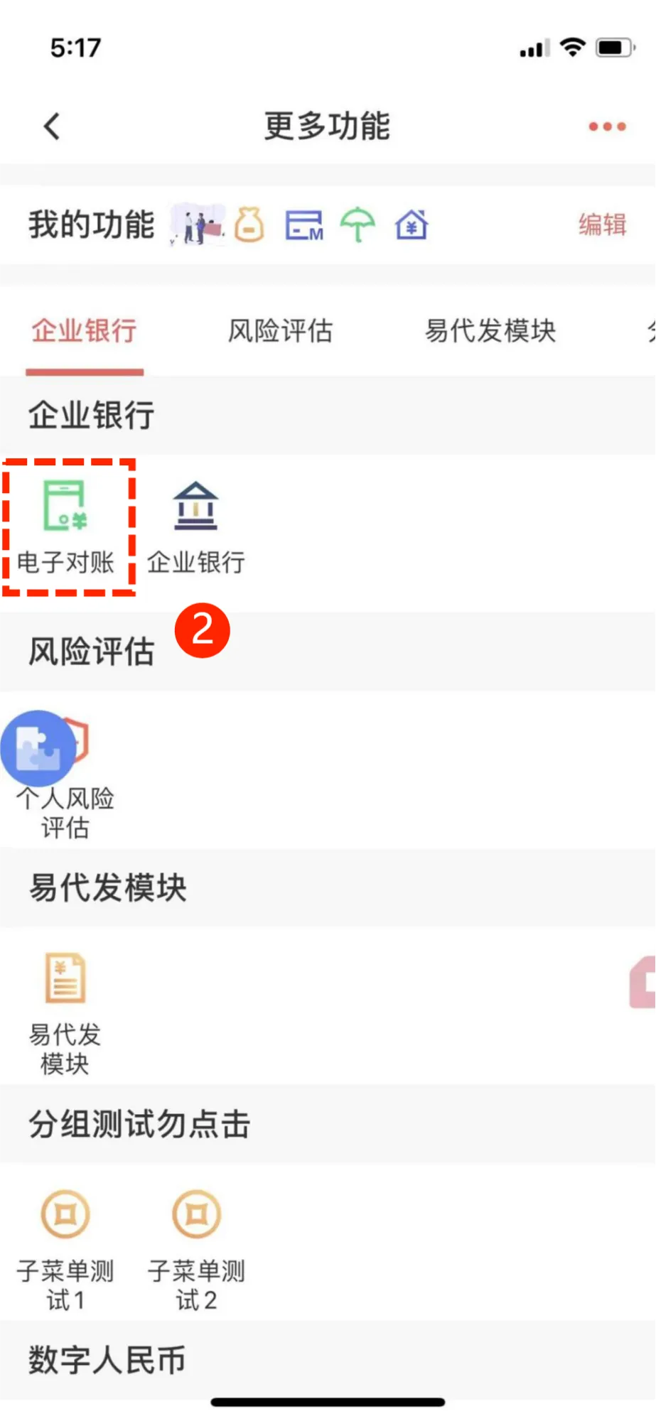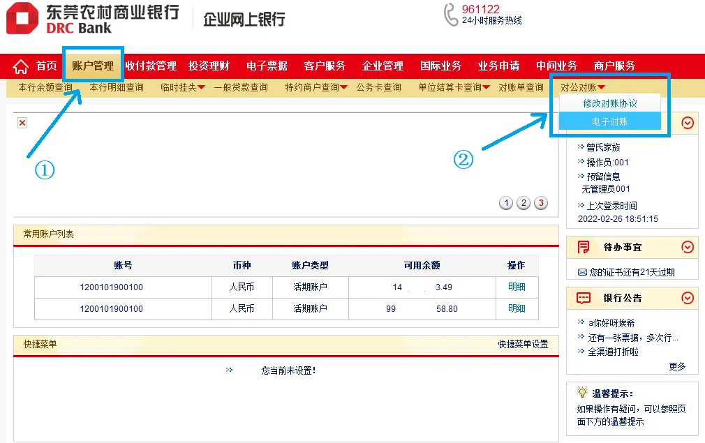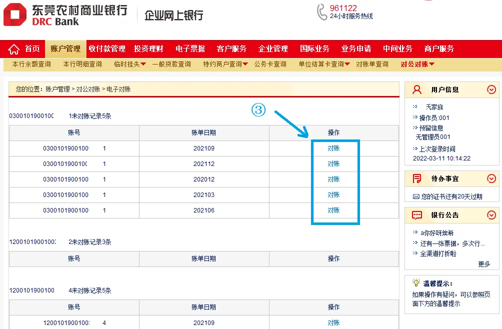 点击“企业银行”—“电子对账”