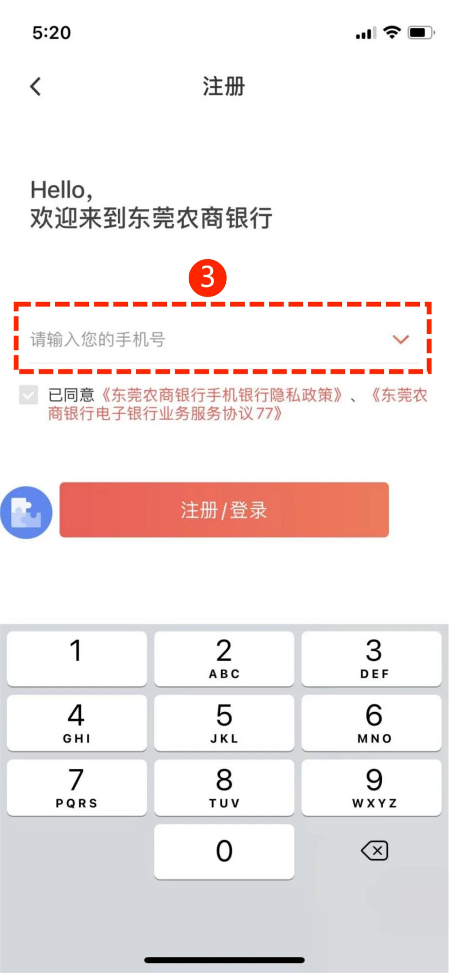 首次登录需要使用对账手机号码进行“注册登录”