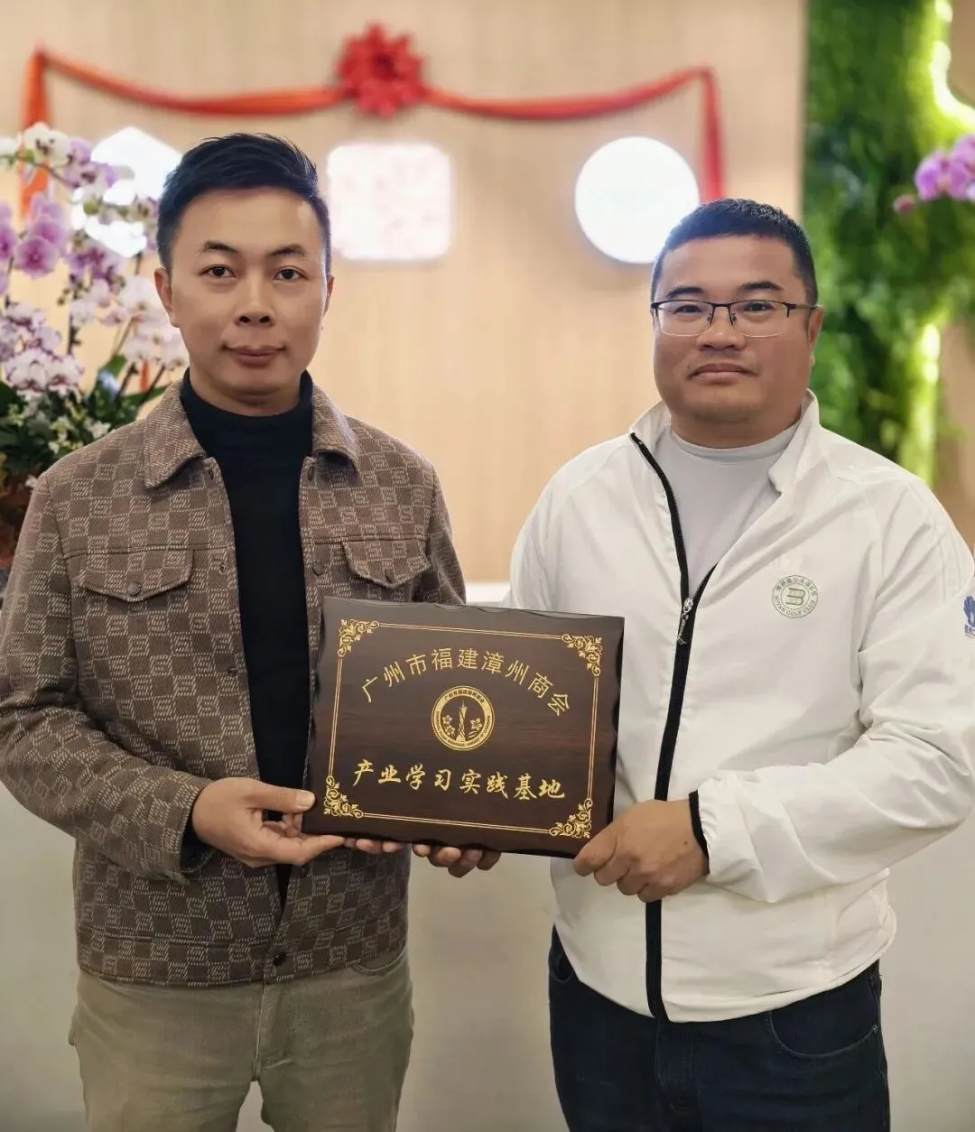 交流环节中,乡贤们围绕绿色发展主题积极互动,结合自身企业业务探讨合作可能性,现场思想碰撞、干货满满。交流尾声,特别举行了授牌仪式,执行会长王海周代表商会,向轮值会长陈武成郑重授予“产业学习实践基地”牌匾。这一举措既是对山水生态公司在行业内专业实力的认可,也旨在为商会会员搭建优质的产业学习交流平台,助力乡贤企业互补资源、协同发展。陈武成秘书长接过牌匾并表示,将充分发挥企业优势,为商会产业学习实践活动提供全力支持,赋能漳商企业共同成长。此次走访作为新年首访与第10站里程碑式活动,不仅为会员企业搭建了高效的交流平台,加深了乡贤间的情谊,更通过授牌丰富了商会产业服务体系,实现了“以走访促交流、以交流促合作”的活动初衷。