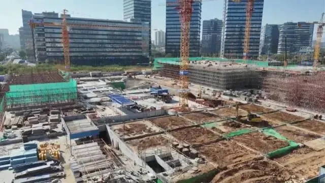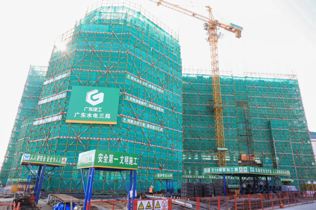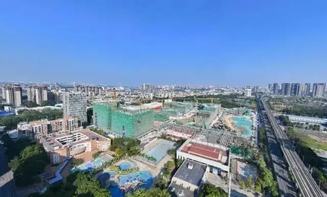 东莞水乡未来学校建设现场近800名建设者全力奋战,部分楼栋已率先封顶,力争春节前实现全部建筑主体结构封顶,2026年8月交付、9月开学。