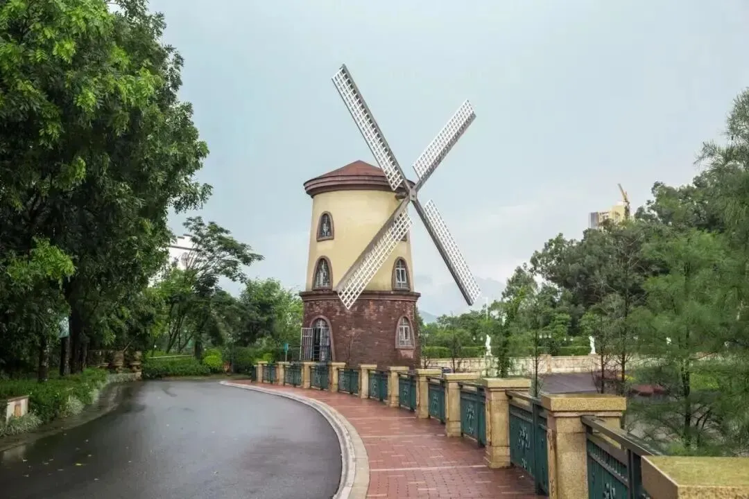 看着风车转动、孩童嬉戏