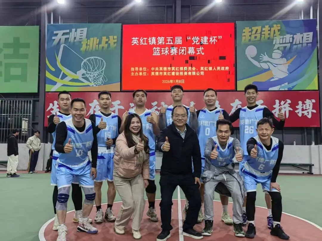 热烈祝贺广州大学附属中学广德学校教师篮球队,经过2026年1月1日至8日的激烈角逐,在英红镇第五届“党建杯”篮球比赛中一路过关斩将,以全胜战绩强势登顶,将冠军奖杯收入囊中!