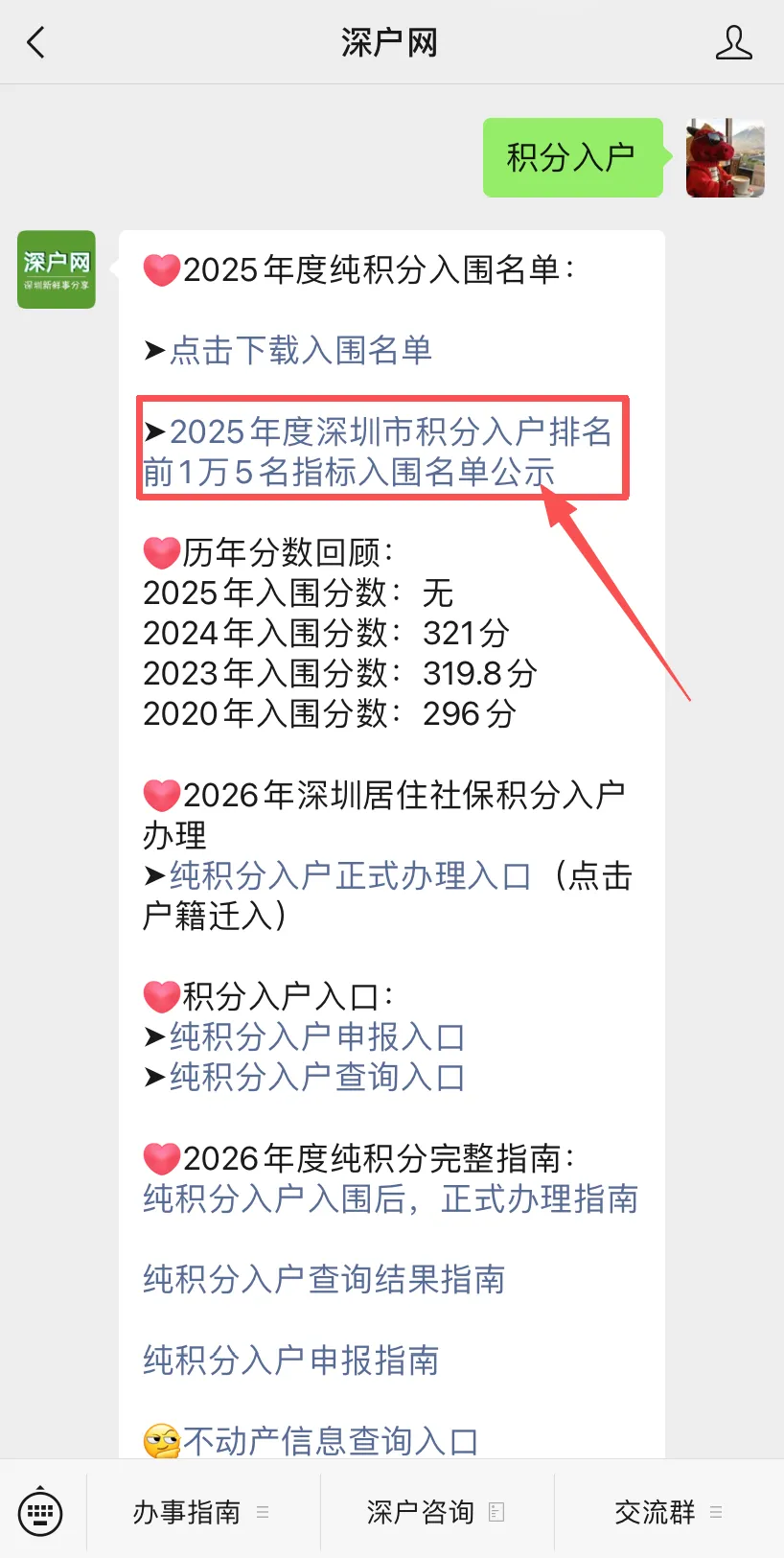 2023年积分入户入围分数是319.8分;