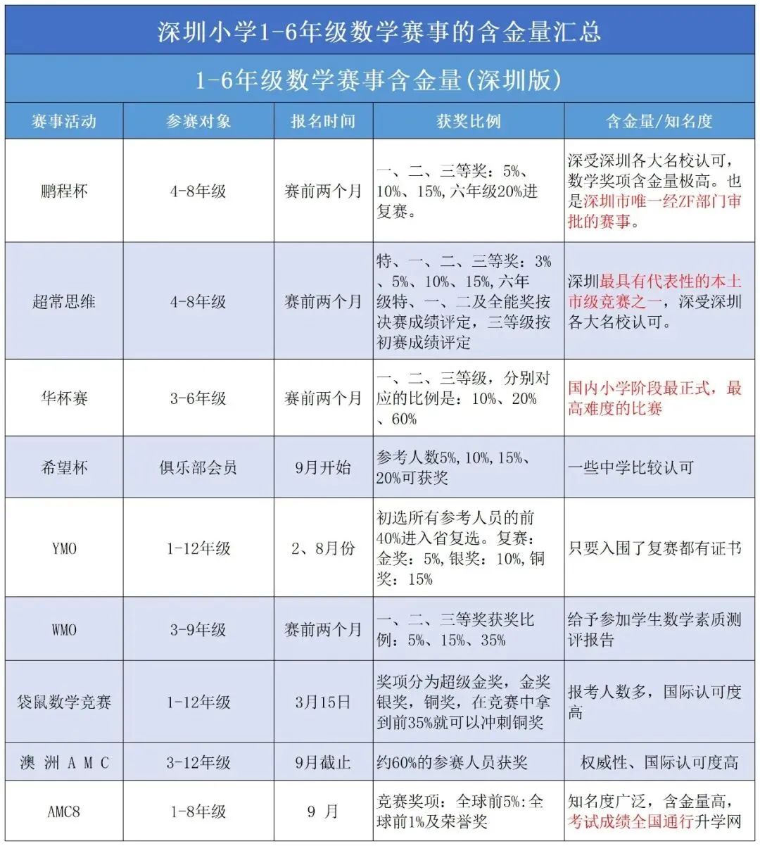 不少家长困惑:深圳哪些数学赛事的含金量高?1-6年级该如何规划奥数学习与参赛?