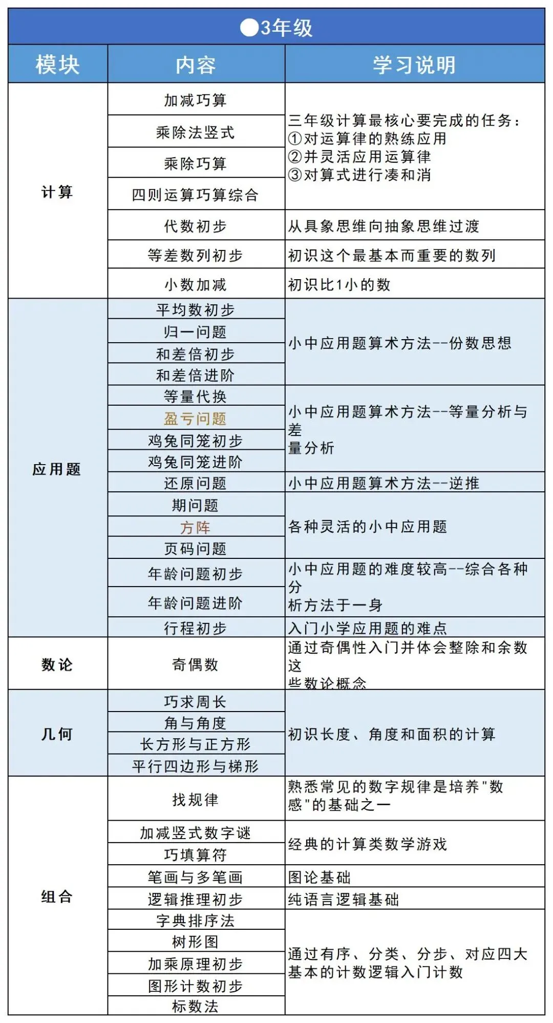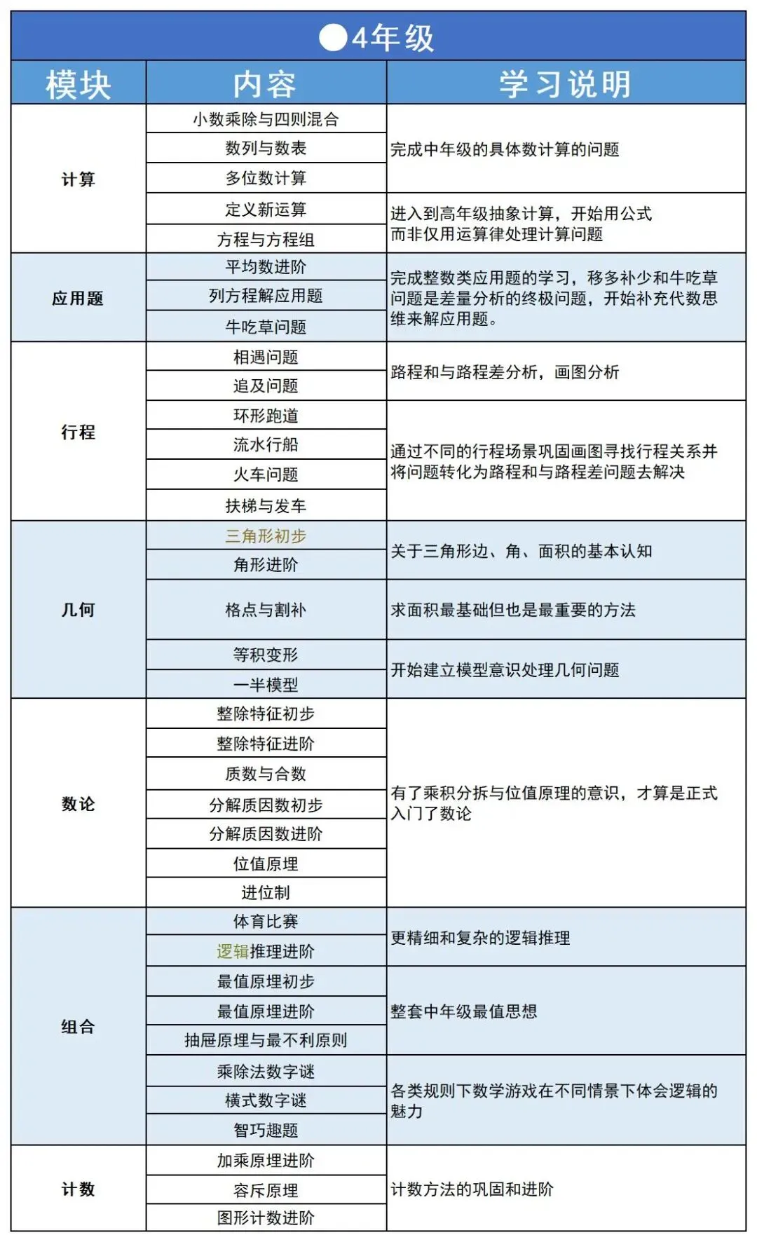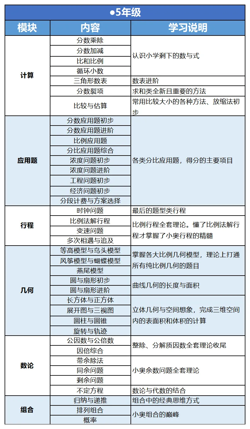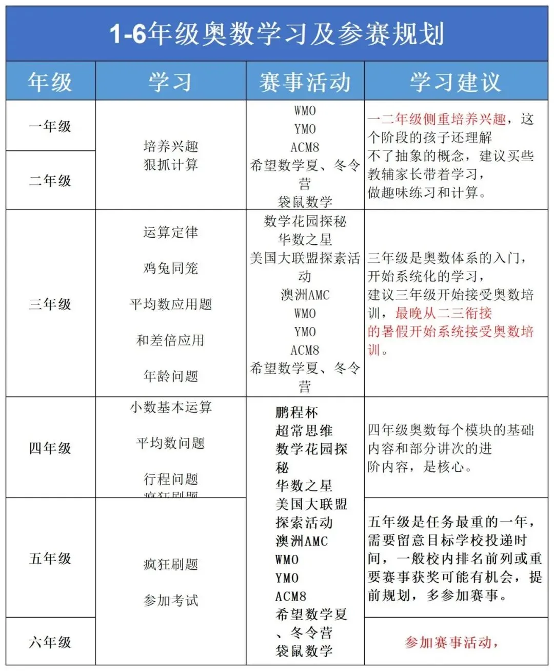 奥数学习讲究循序渐进,不同年级核心目标不同:
