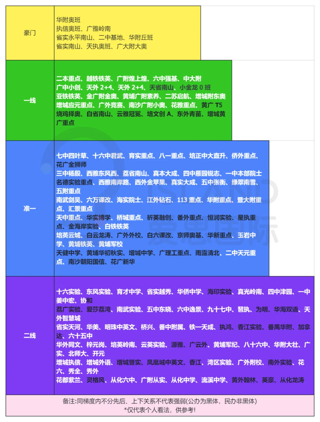 广州小升初对应的初中数量不少,还分了不同的梯队。其实比起选学校,选班级反而更关键 —— 进重点班(ZDB)才是小升初阶段的核心目标。