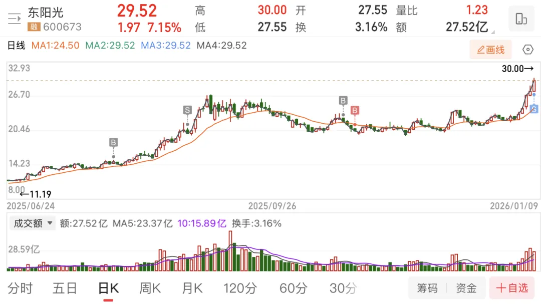 ,随着关注度的不断提升,其核心上市资产东阳光的股价也再刷历史新高。