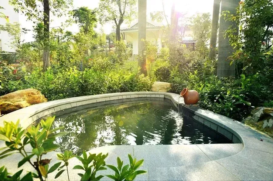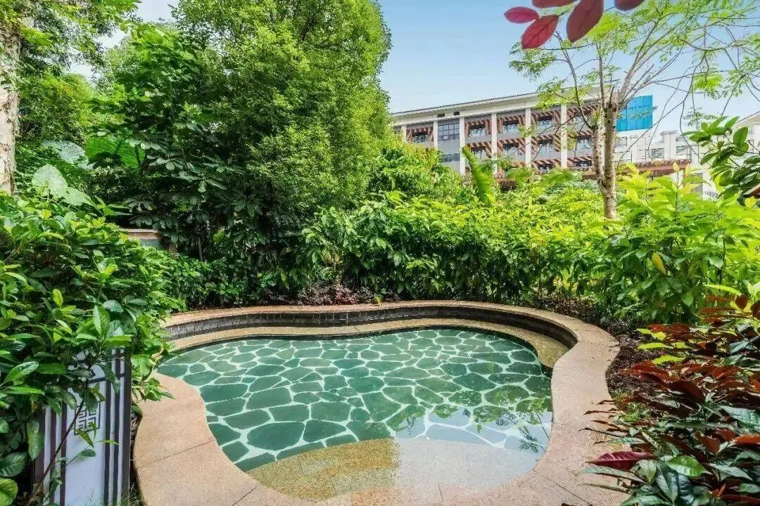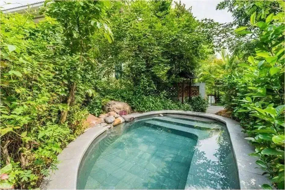 泡池若隐若现于葱郁的树林之内