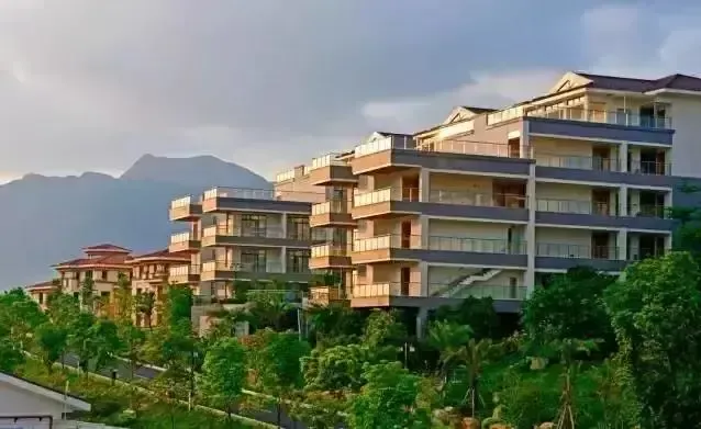 三英温泉依山而建,独具特色