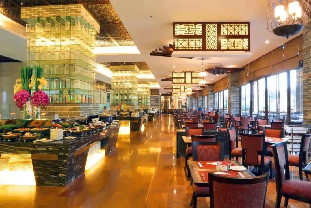 酒店含2大2小自助早餐,用餐地点:酒店餐厅,早餐:7点30-9点30(具体以前台告知为准),加250元可2大2小,2个大人和2个1.2米以下儿童,增加酒店豪华海鲜自助晚餐:下午6点-晚上8点,若酒店整体入住入住没达到自助餐标准,则更改为同等价值套餐