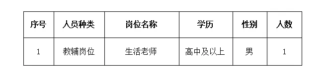 因学校实际用人需求,现招聘生活老师(男)1名。