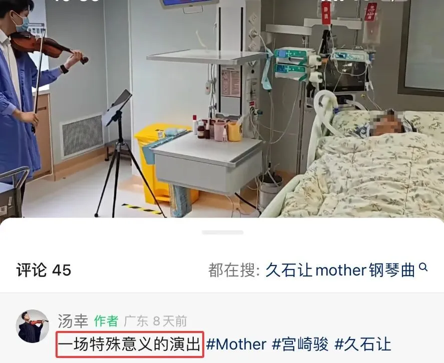 东莞市中医院ICU医生确认,这一幕确实发生在该医院ICU病房,病人的儿子邀请了小提琴演奏者为母亲演奏。
