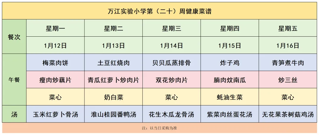 东莞中学万江实验小学学生第(20)周健康菜谱
