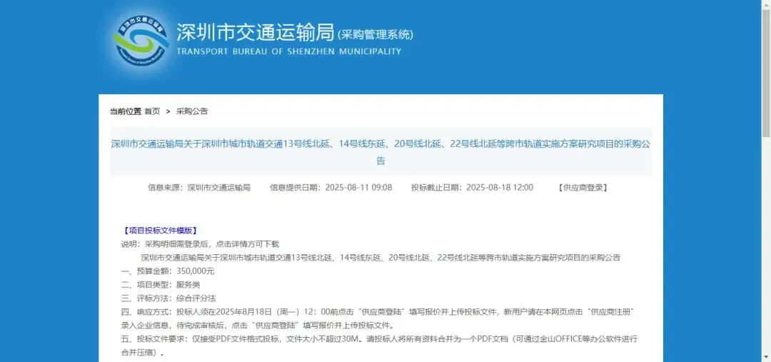 2025年8月,深圳市交通运输局发布采购公告,正式启动包括14号线东延段在内的多条跨市轨道实施方案研究,这意味着该项目的前期工作已经重新启动。