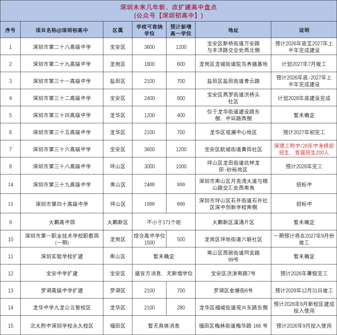同时,未来几年也将新增一些公办高中。