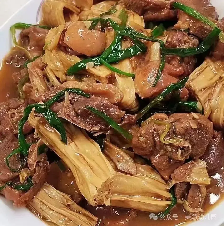 支竹焖鸭、蒜香大白菜、龙骨红萝卜淮山玉米汤、红薯米饭