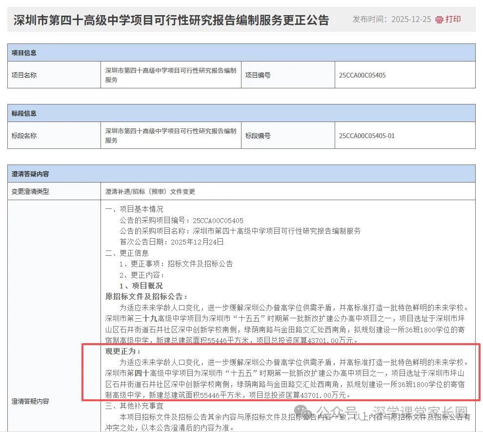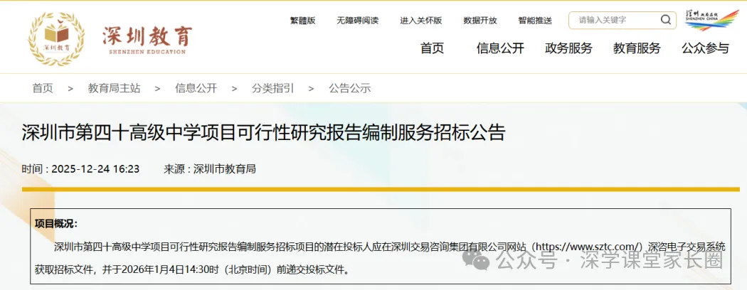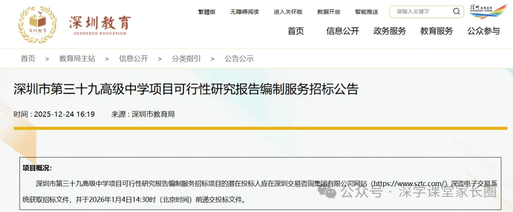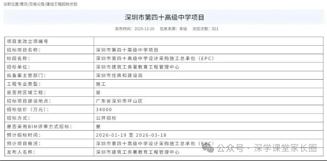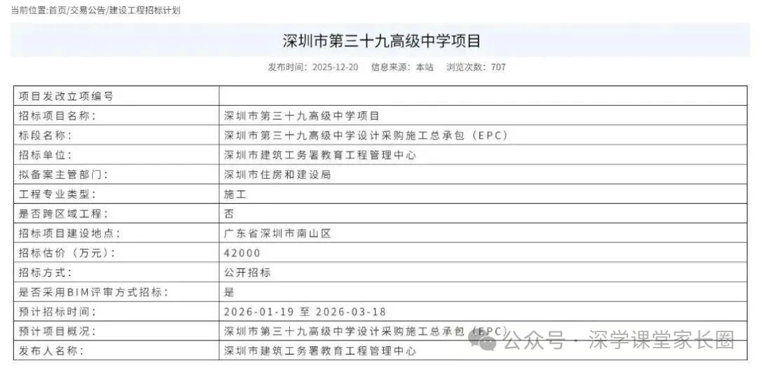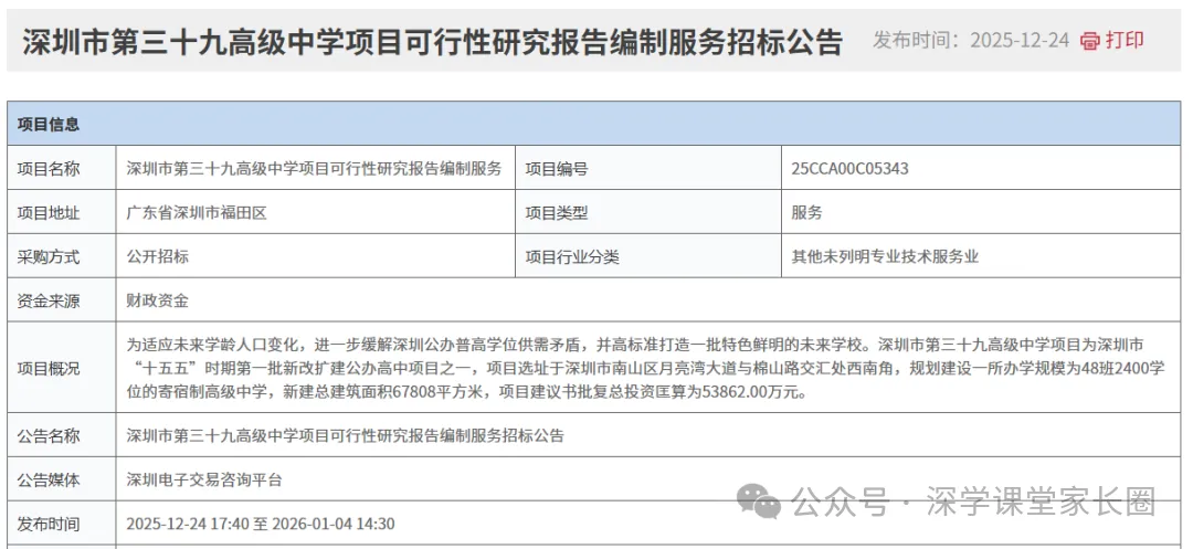 最新消息!深圳“十五五”第一批新建公办普高已有2所公开招标,分别是深圳市第三十九高级中学和深圳市第四十高级中学。