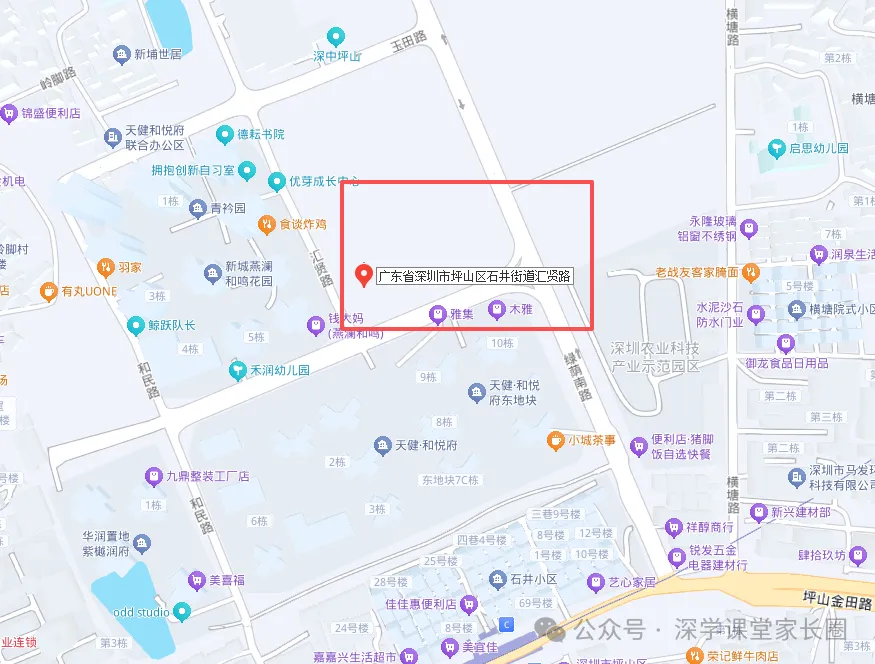 学校选址:深圳市坪山区石井街道石井社区深中创新学校南侧,绿荫南路与金田路交汇处西南角