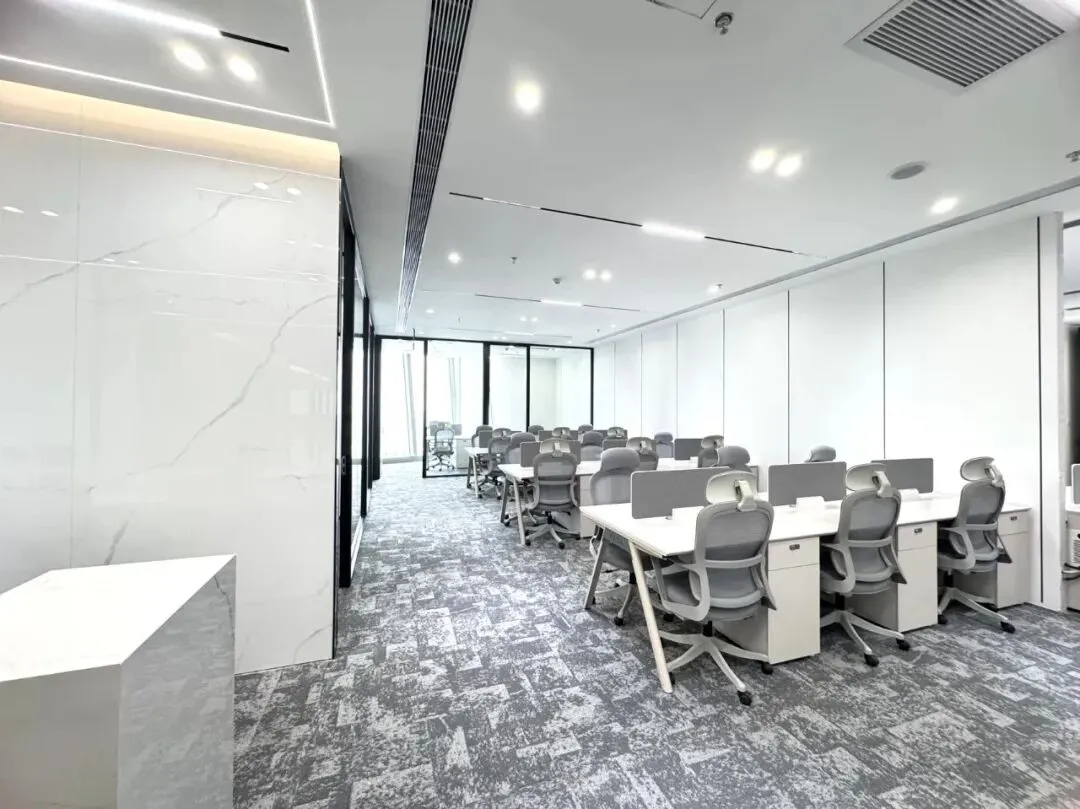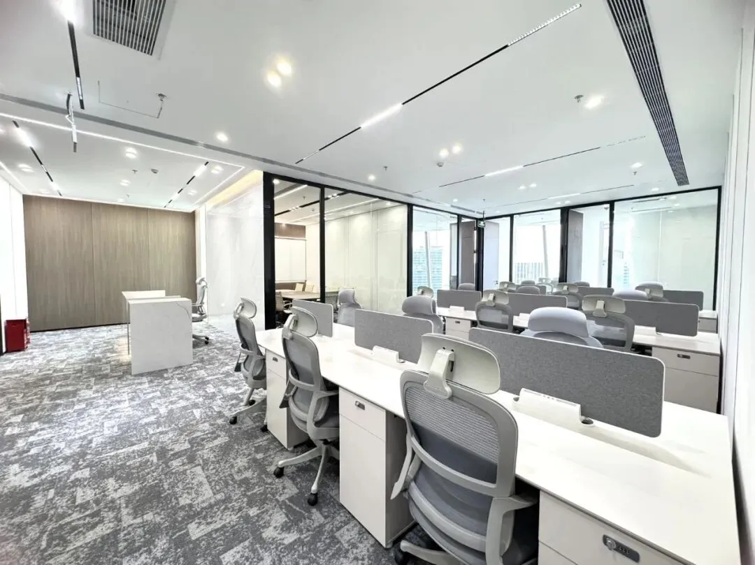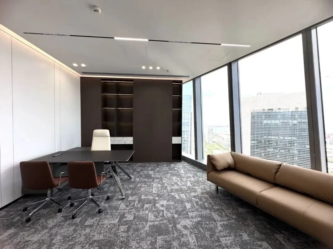 交付标准:公区精装,VAV空调,15cm网络地板、国际标准隔断,整体空间明亮通透