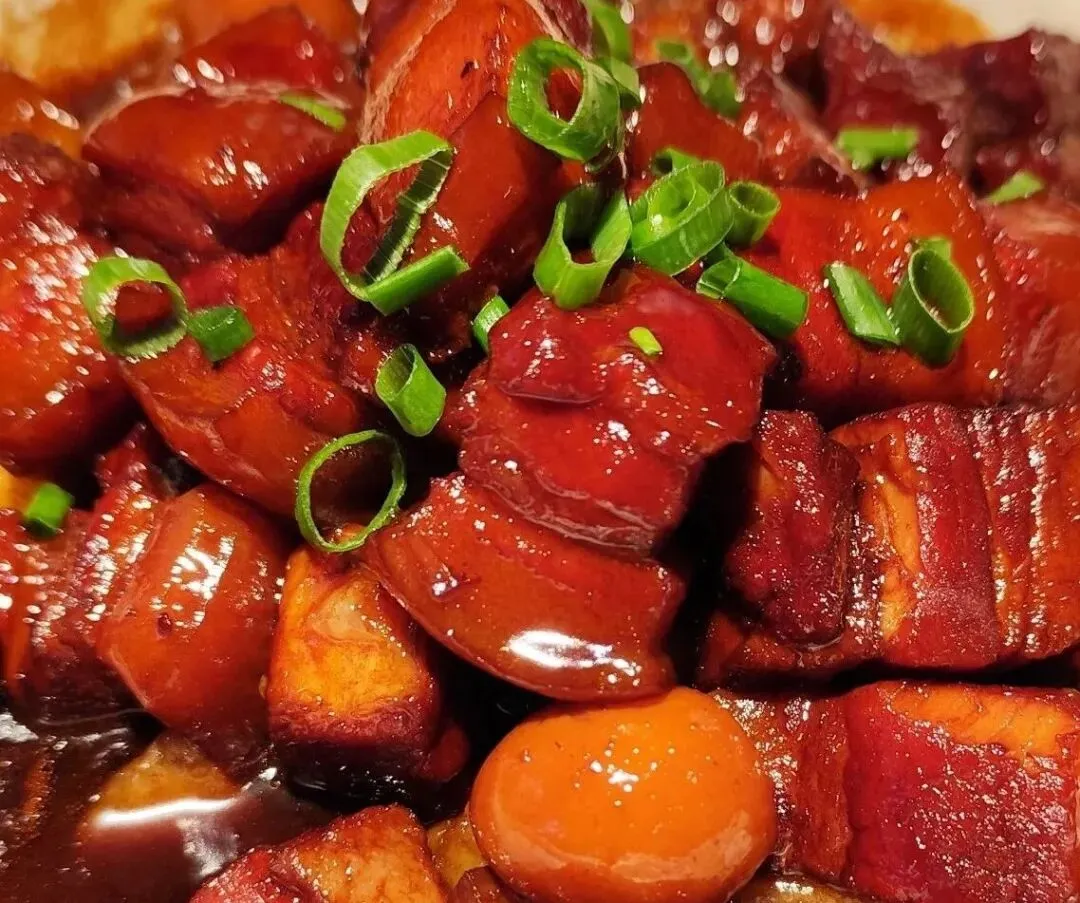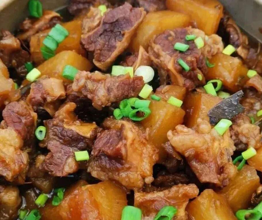 牛腩焖白萝卜、红烧肉、鱼肉丸时蔬、紫菜蛋花汤
