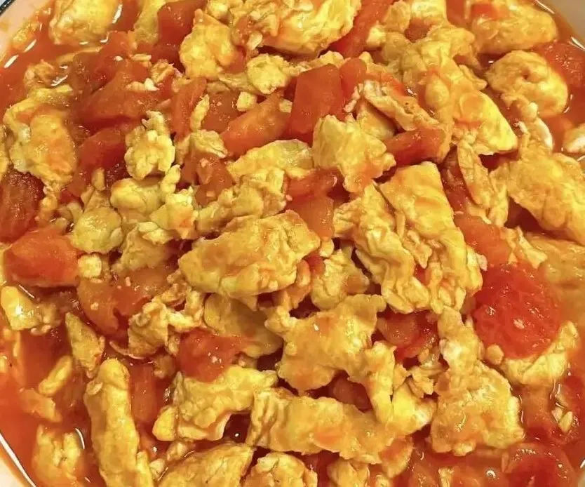 鸡蛋炒西红柿、鸡腿、时蔬、猪肝枸杞叶汤